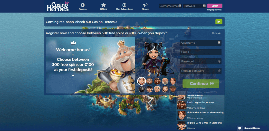 Casino Heroes100% oder 300 Freispiele